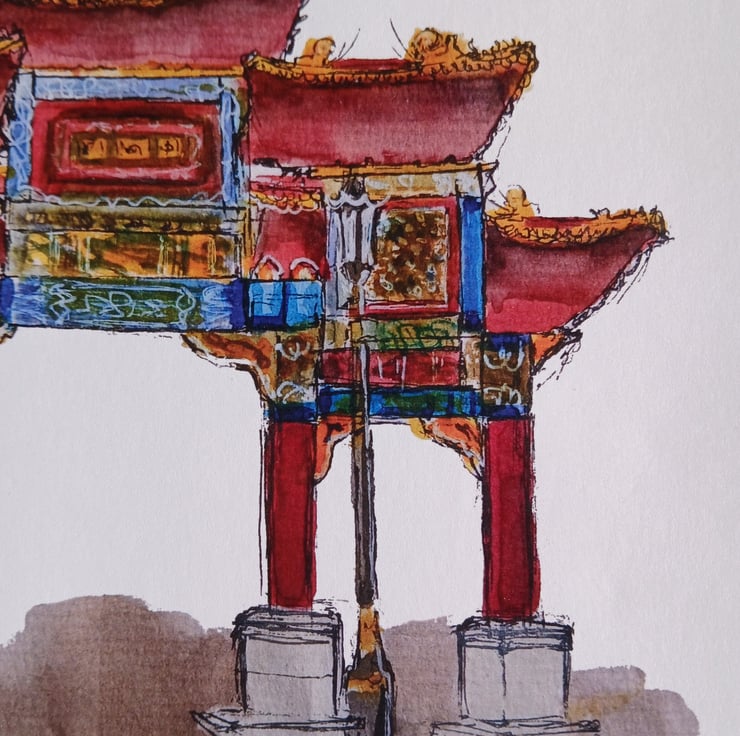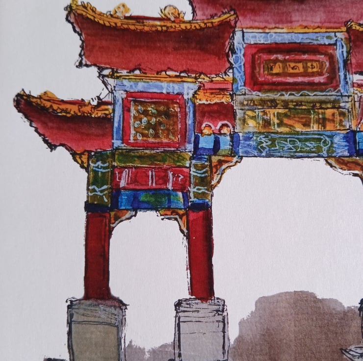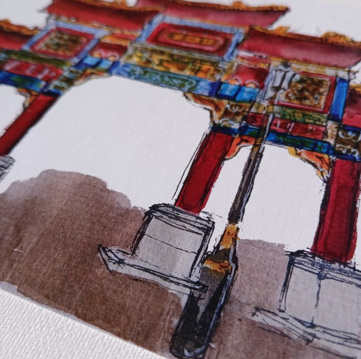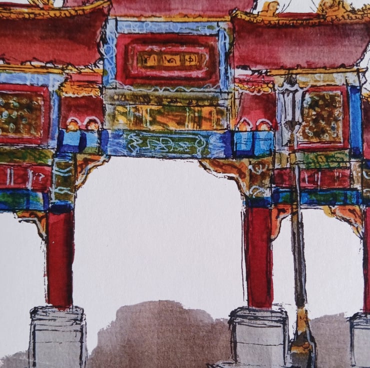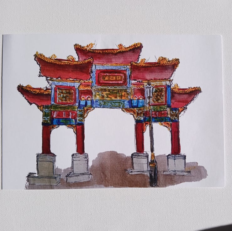 A print of my watercolour of the colourful Arch in Liverpool's China Town.