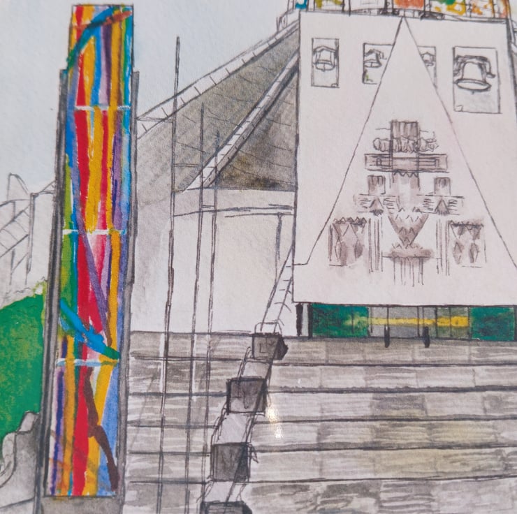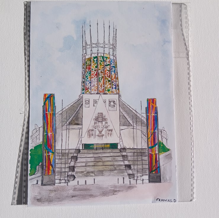 A print of my watercolour of the metropolitan cathedral (paddy's wigwam) in Liverpool. I