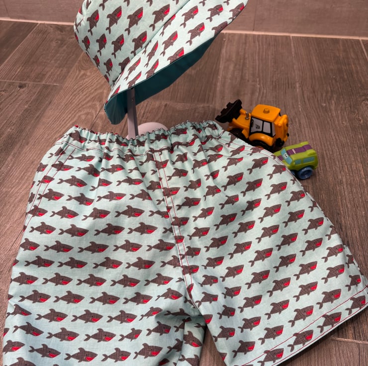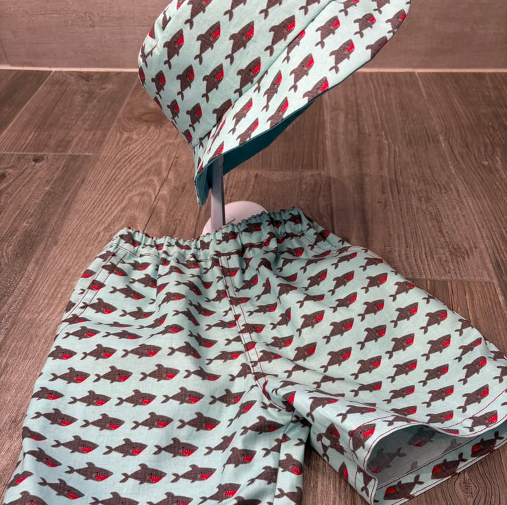 Shorts with two side pockets and wide brim sun hat.
