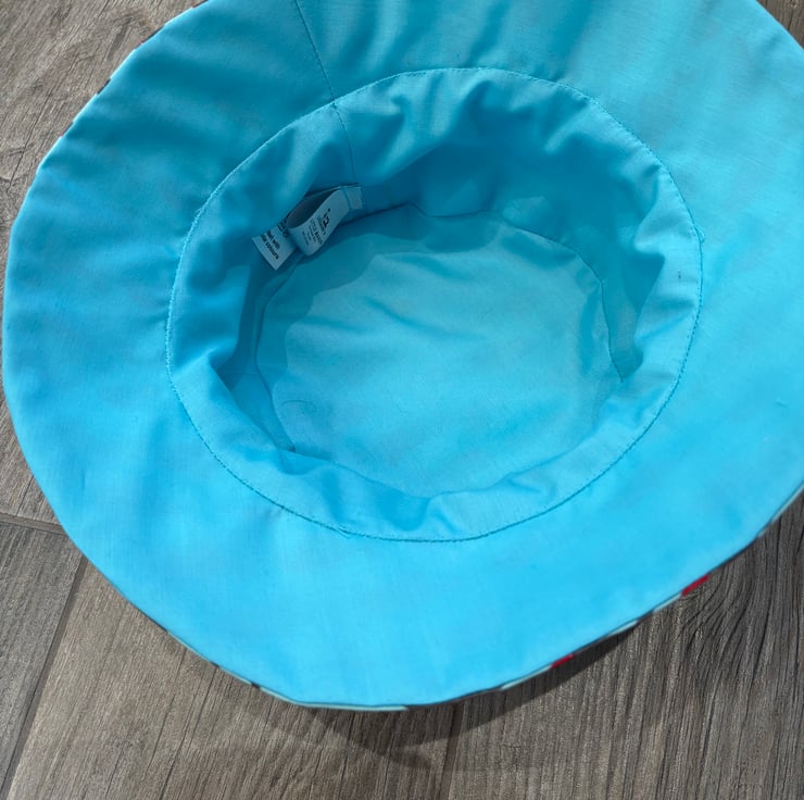 The sun hat has a polyester/cotton lining and a slight stiffening inside the hat to give a little structure.