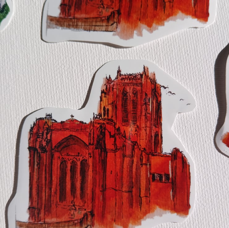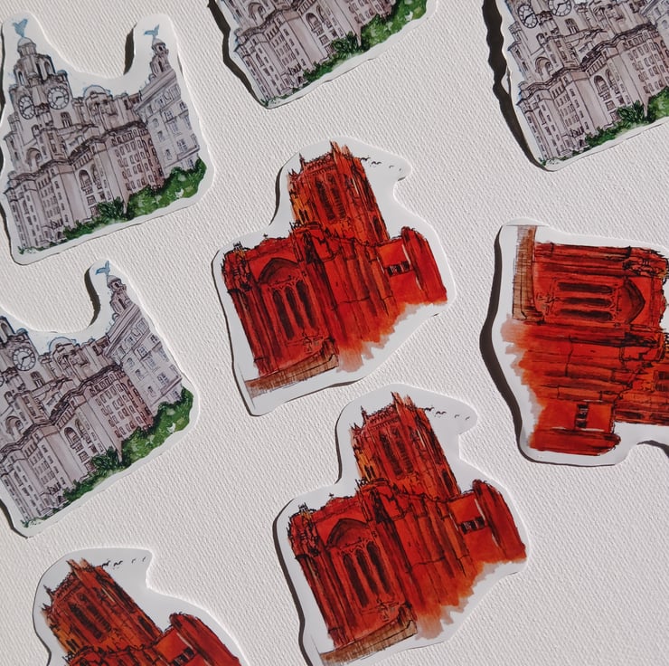 Stickers of my paintings of the Liver building and the anglican cathedral.