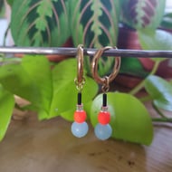The hoops are made of hypoallergenic steel. Jump ring and ball headpins are gold plated.