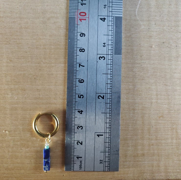 Length: approximately 4 cm from gemstone bead to top of the stainless steel hoop. The hoop itself is 16 mm in diameter.
