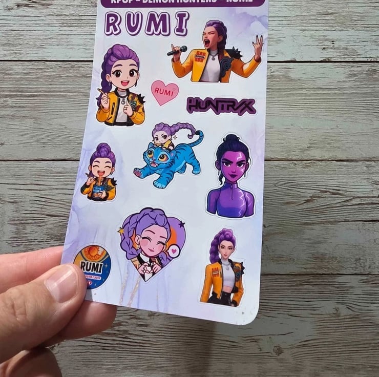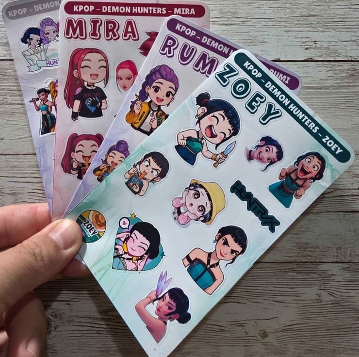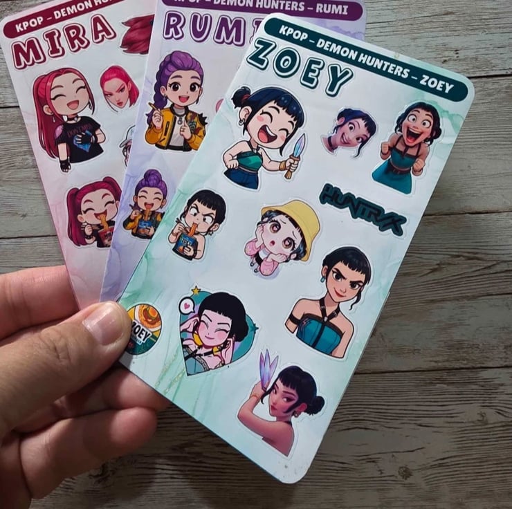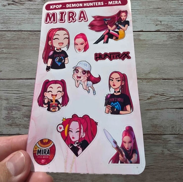 Decorate your journals, planners, and everyday items with these adorable K-Pop Slayers sticker sheets featuring Mira, Zoey & Rumi!