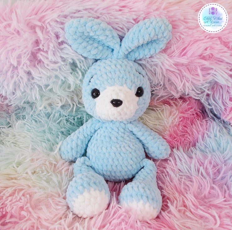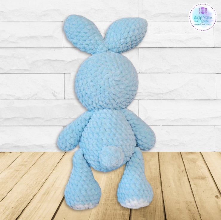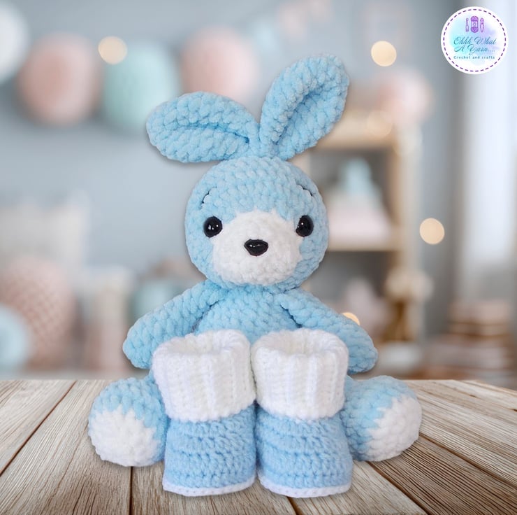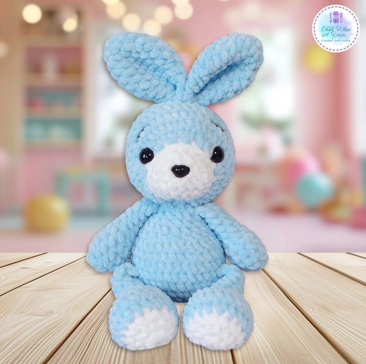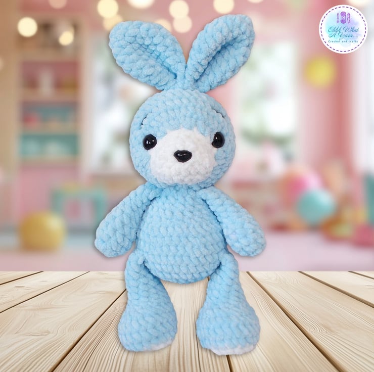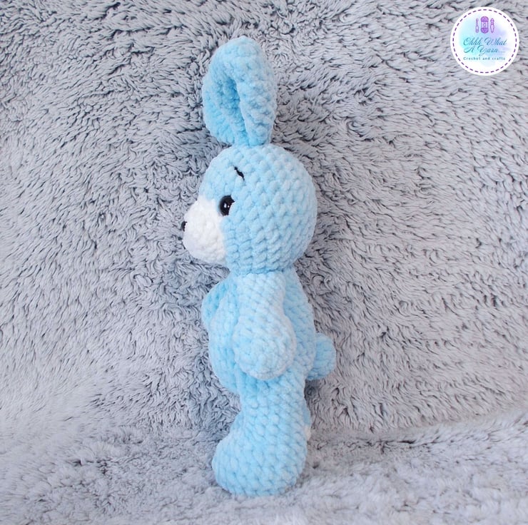 A tiny treasure for your tiny treasures, this cute bunny has been crocheted with gorgeous 100% polyester snuggly chenille yarns in a lovely shade of light blue.