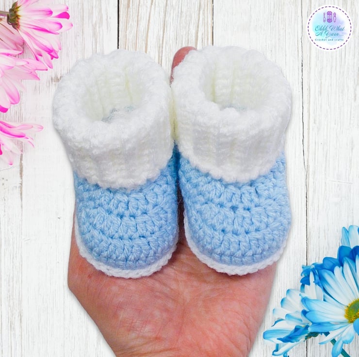 He would make a perfect new baby gift, and I have made some optional matching age 0-3 months ribbed cuff boots. The boots are crocheted with acrylic yarn and are hand or machine washable at 30 degrees, do not tumble dry. (See drop down menu for purchase options)