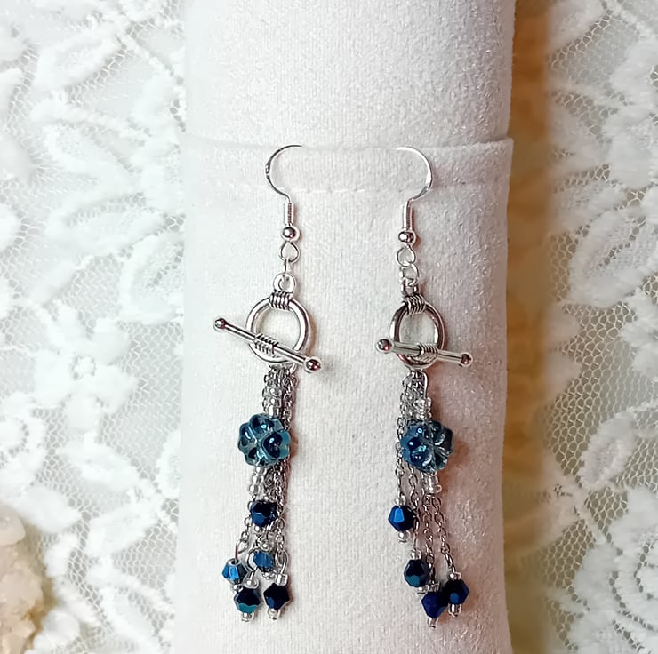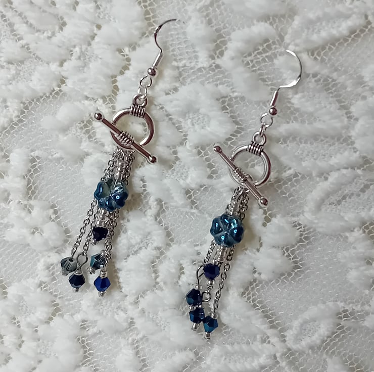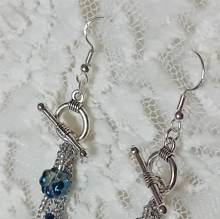 Crafted with an elegant blend of glass beads in various sizes, these earrings feature durable stainless steel toggle clasps and delicate sterling silver hooks. Lever Back option available.