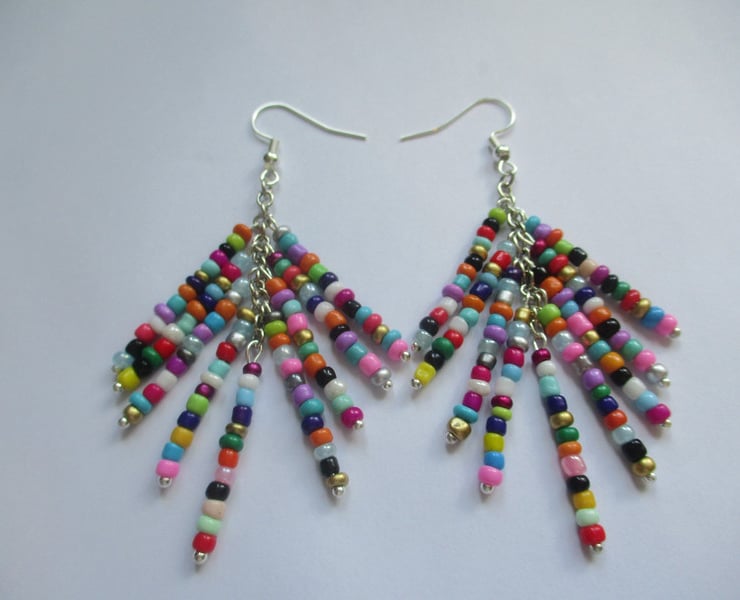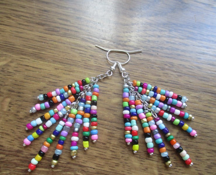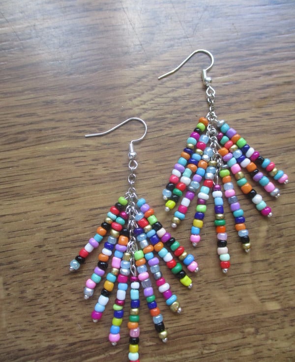 I have this designs because of tribal affection from Vietnamese tribal dressings. Their drop length is 6.5cm with lovely colorful beads.