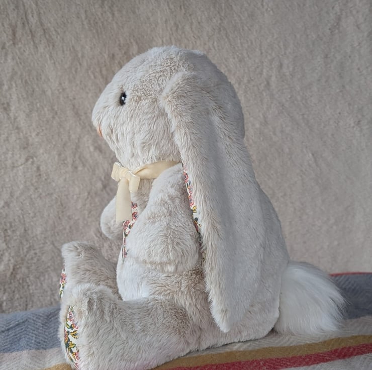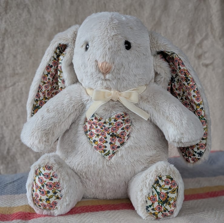 Personalised weighted memory rabbit made with your special fabrics.