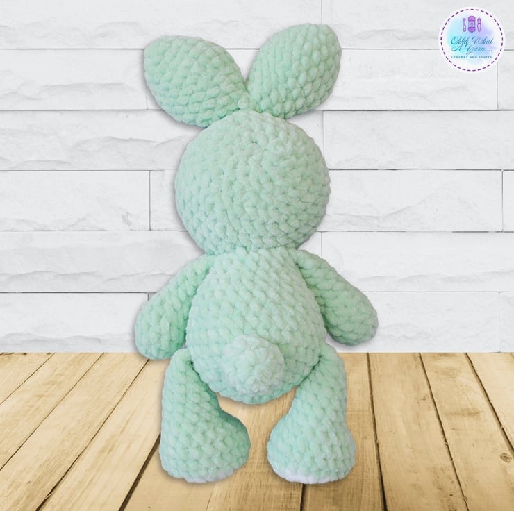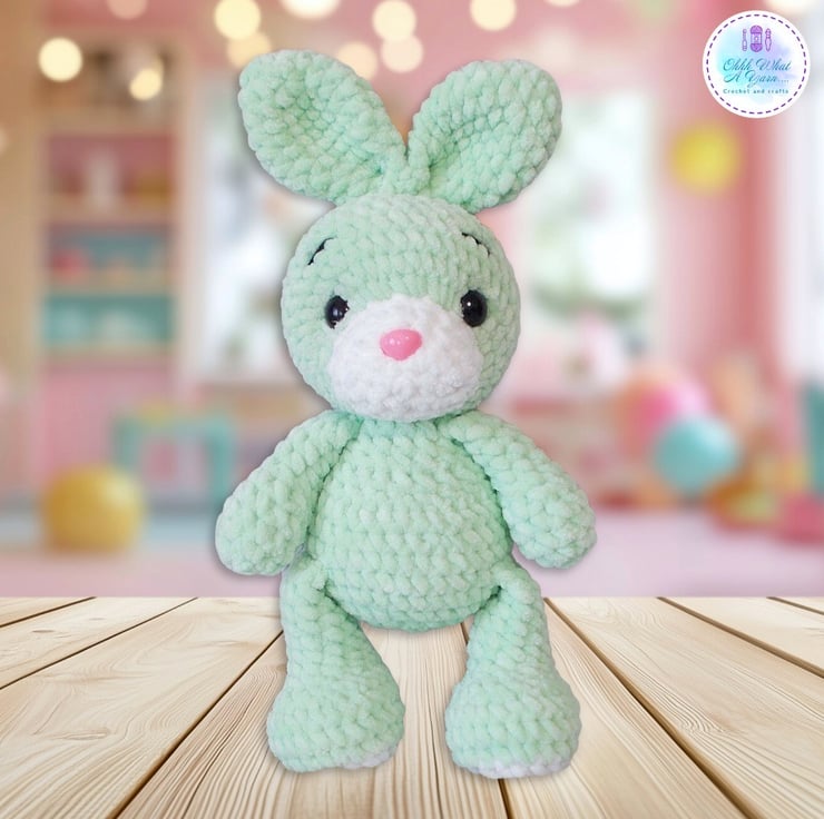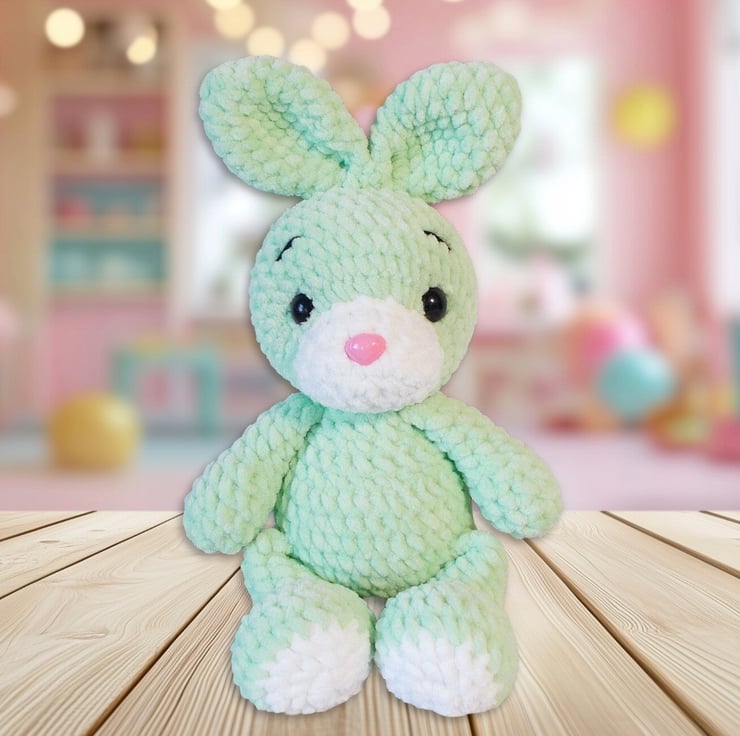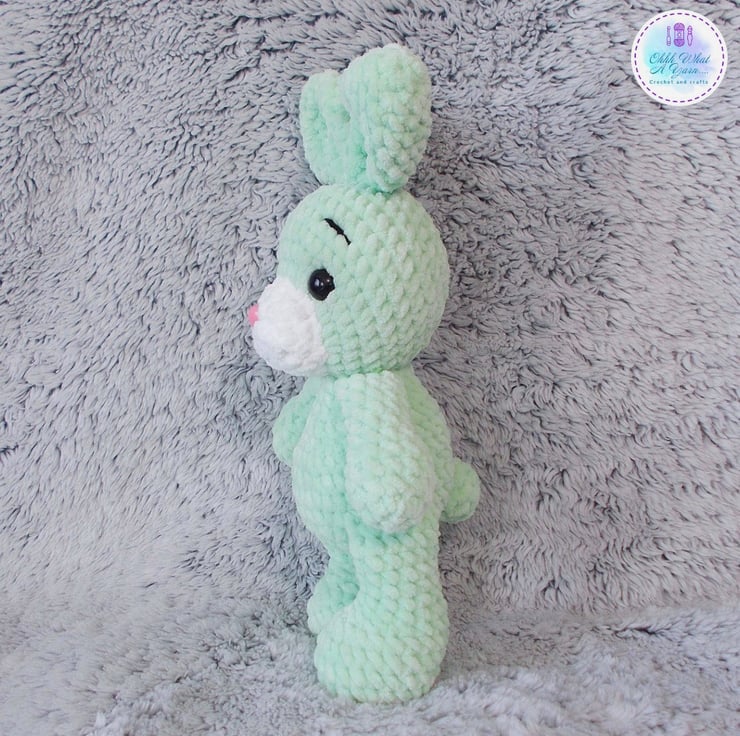 A tiny treasure for your tiny treasures, this cute bunny has been crocheted with gorgeous 100% polyester snuggly chenille yarns in a lovely shade of mint green and white.