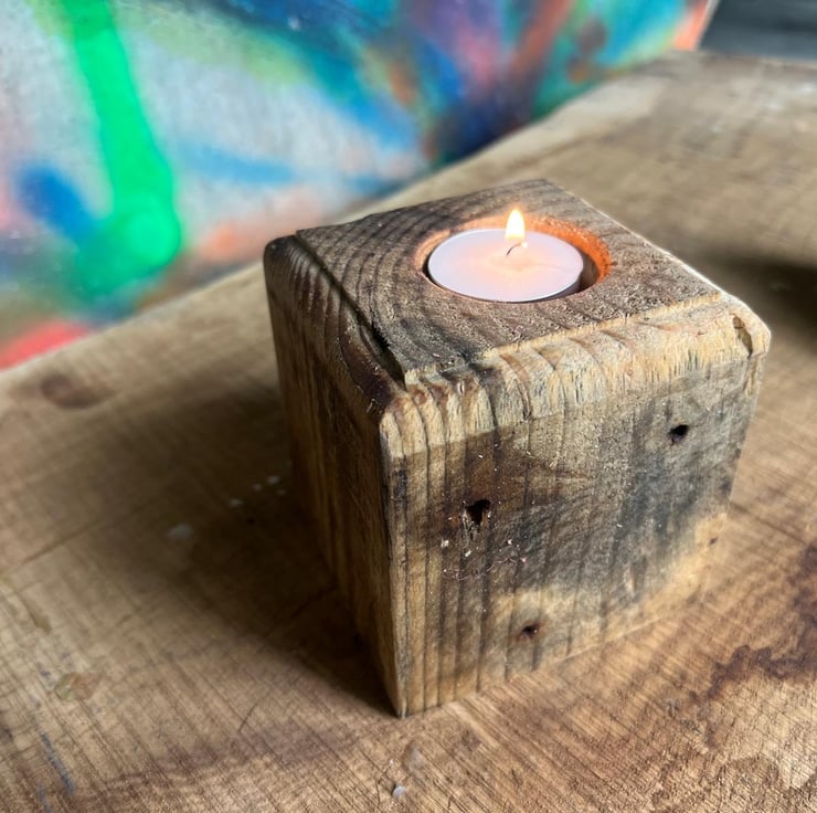 Chunky stand alone tea light / candle holder. Let this beautiful holder of light command your window ledge, fireplace or table.