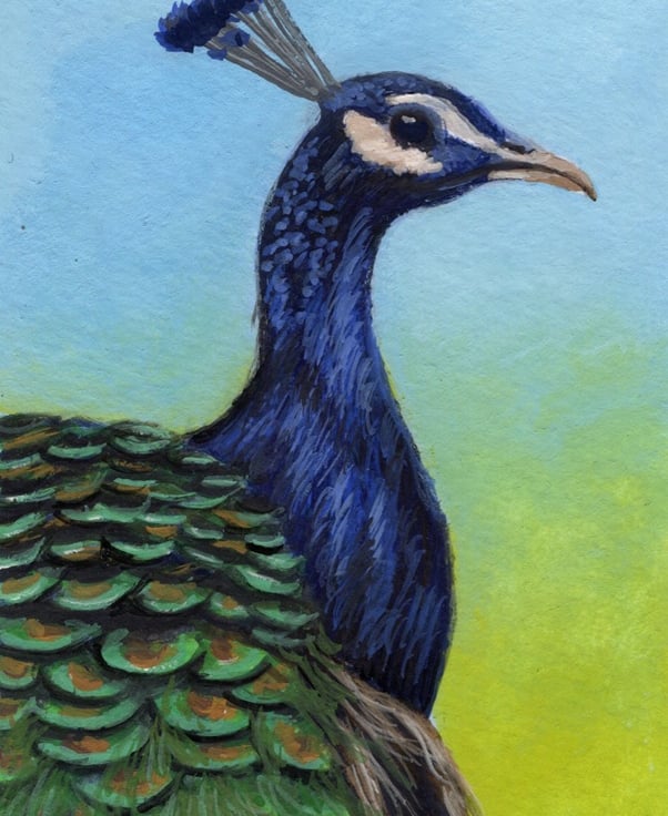 An adorable painting of a peacock.