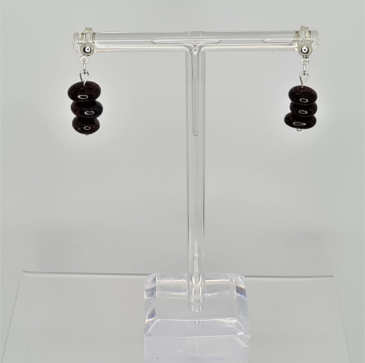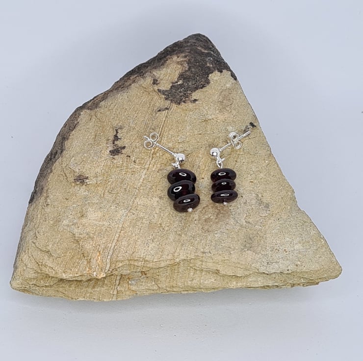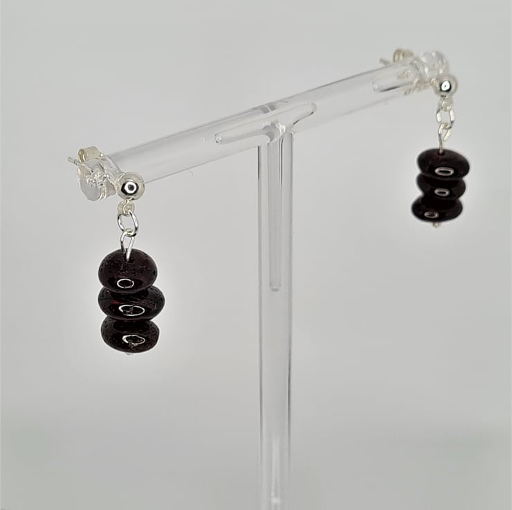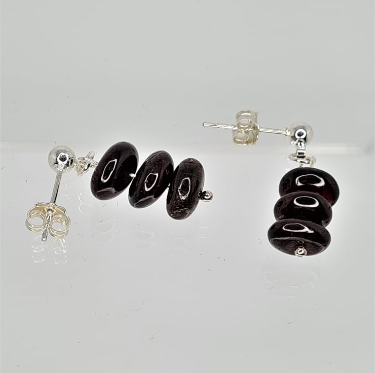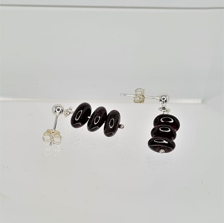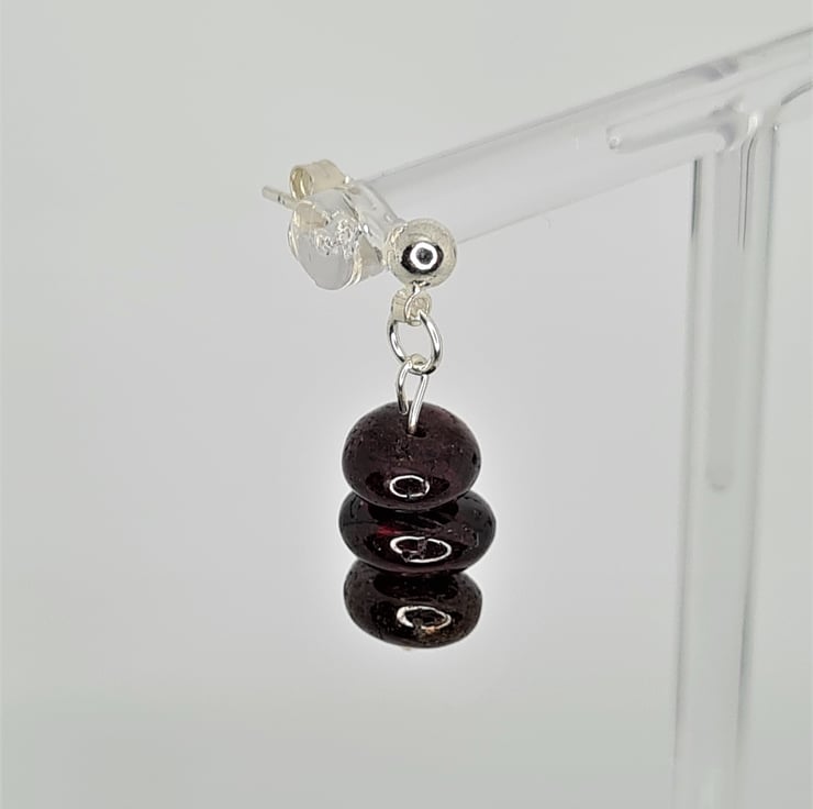 Sterling Silver Garnet Gemstone Earrings. Sterling Silver 3mm Ball Stud Earrings With 8mm Long Post With Push Back Butterfly Fitting. Sterling Silver Jump Ring And Ball Headpin. Deep Red Garnet Gemstones. The Earrings Are 26mm Long From The Bottom Of The Ball.