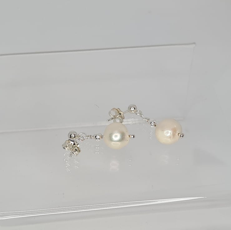 Handmade Sterling Silver Stud Earrings, White Freshwater Pearl, Dangle Earrings, Handmade Jewellery, Handmade Earrings, Gift For Her.