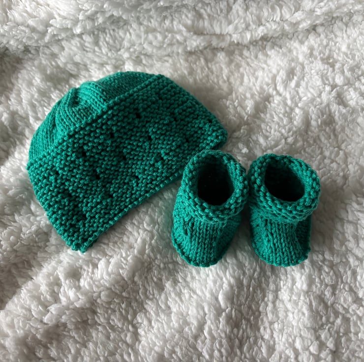 Hand knitted 0-3 months baby outfit.