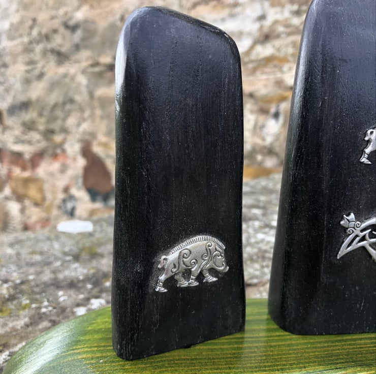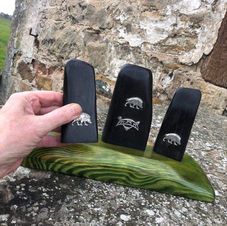 The figures are of five thousand year old Bog Oak (2) and one of Sycamore.