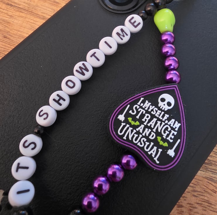 With this around your wrist, never drop your phone again with this Beetlejuice inspired Phone charm