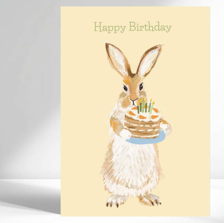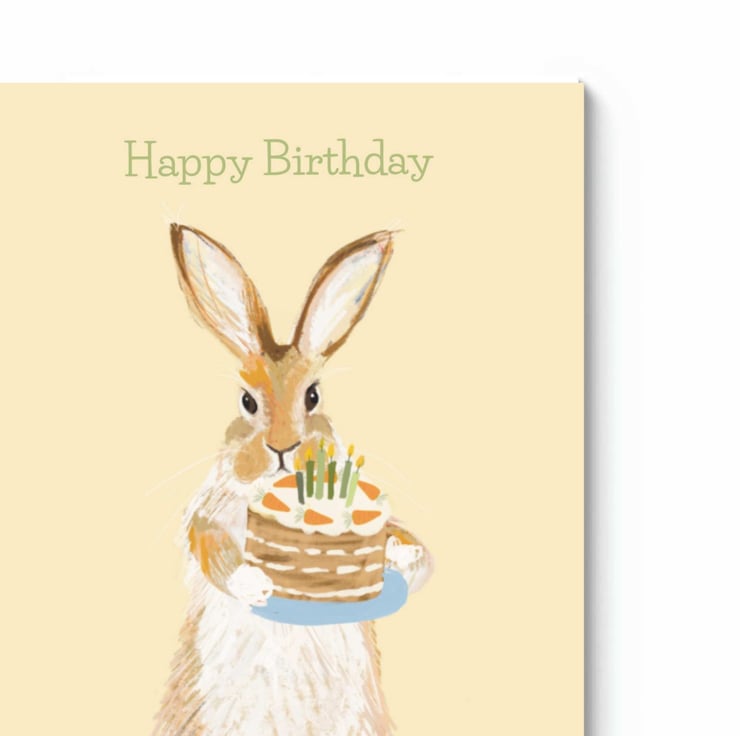 The Hare family birthday card celebrating with a special carrot birthday cake. Another unique design from The Hedgerow Artist perfect for sending a birthday wish to family or friends. .