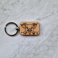 Hand burned wooden cute tiger keyring