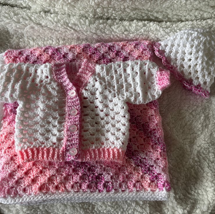 Beautiful hand crocheted baby set.