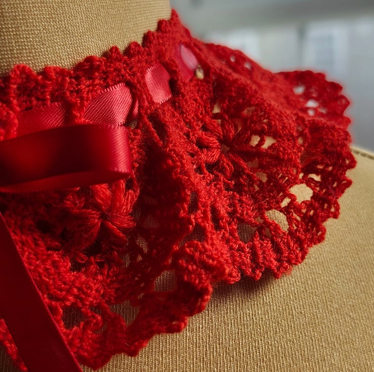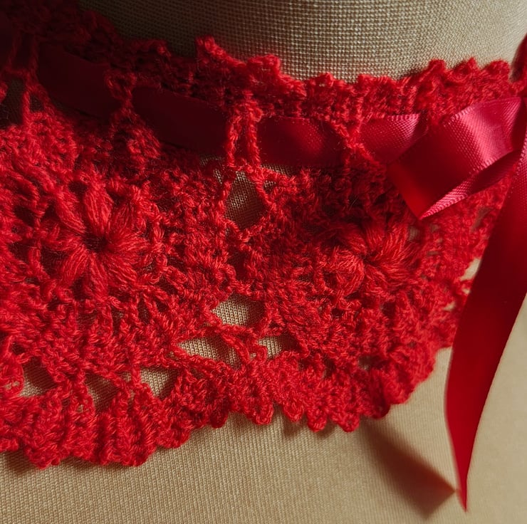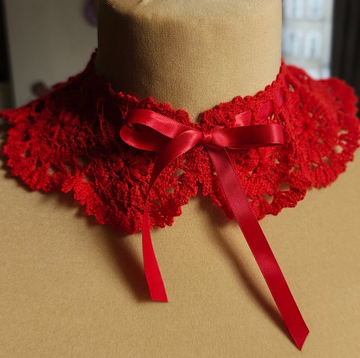 This handmade crochet collar is designed as a unique accessory to add a special touch to your outfit.