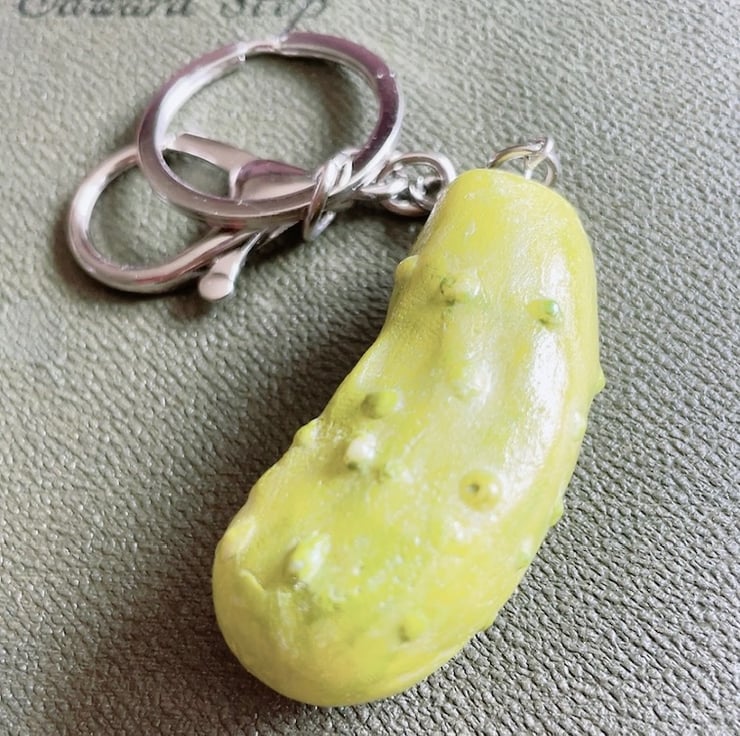 This pickle keyring keeps your keys secure while adding a playful touch to your bag, backpack, or set of keys. Whether you're a pickle lover or just enjoy unique accessories, this little companion is sure to make you smile wherever you go. It even glows in the dark making your keys easy to spot at night while adding an extra touch of playful magic! Just charge it under UV light or sunlight for the best effect.