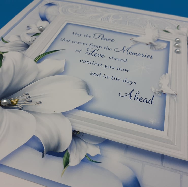 The greeting reads 'May the peace that comes from memories of love shared comfort you now and in the days ahead'.