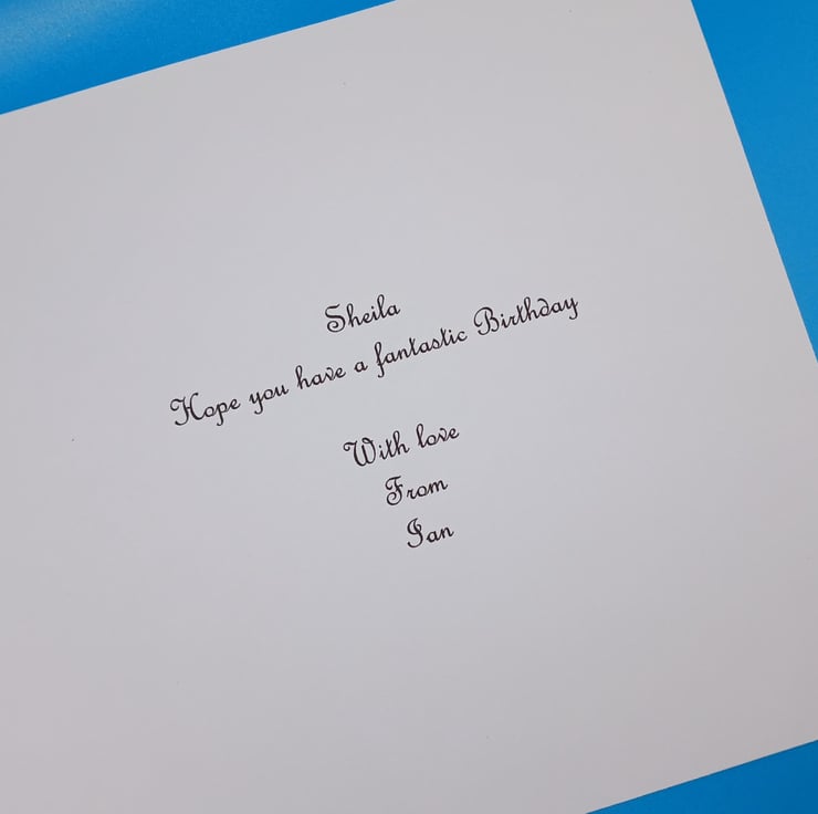 This card is made with white heavy weight card and measures 8x8 inches 20x20cms and comes with a matching envelope and a insert that can be personalised with your own message please see the example of the insert in the pictures