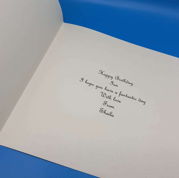 White base card that measures 8x8 inches 20x20cms and comes with a matching envelope and a insert that can be personalised with your own message please see the example of the insert in the pictures
