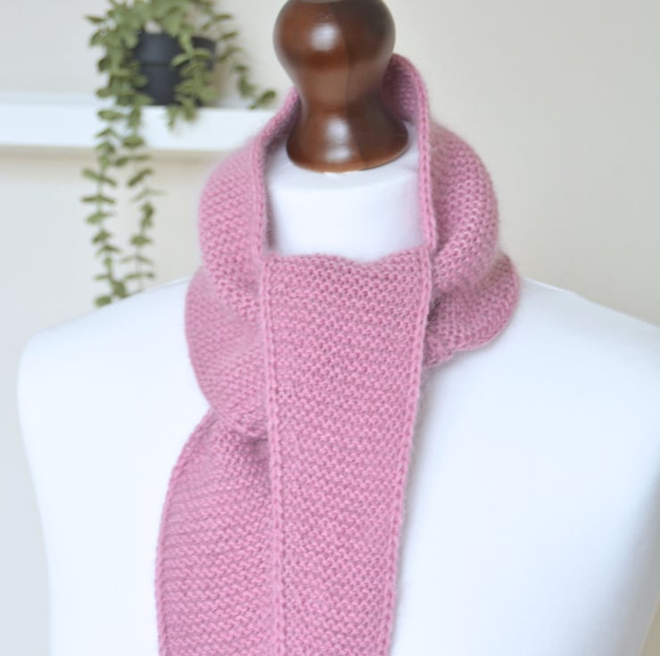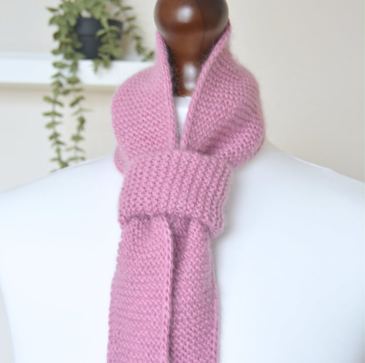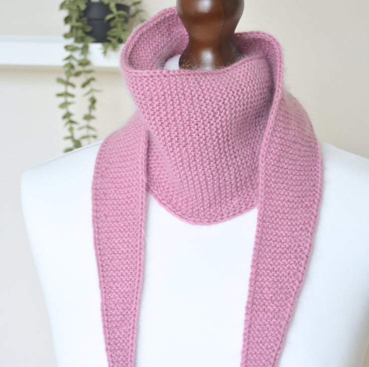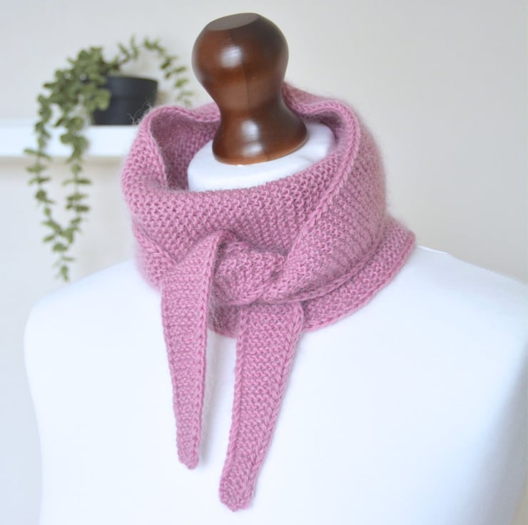 Knitted Scarf Small Triangle Scarflette Harmony Scarf Merino Silk Dusky Pink