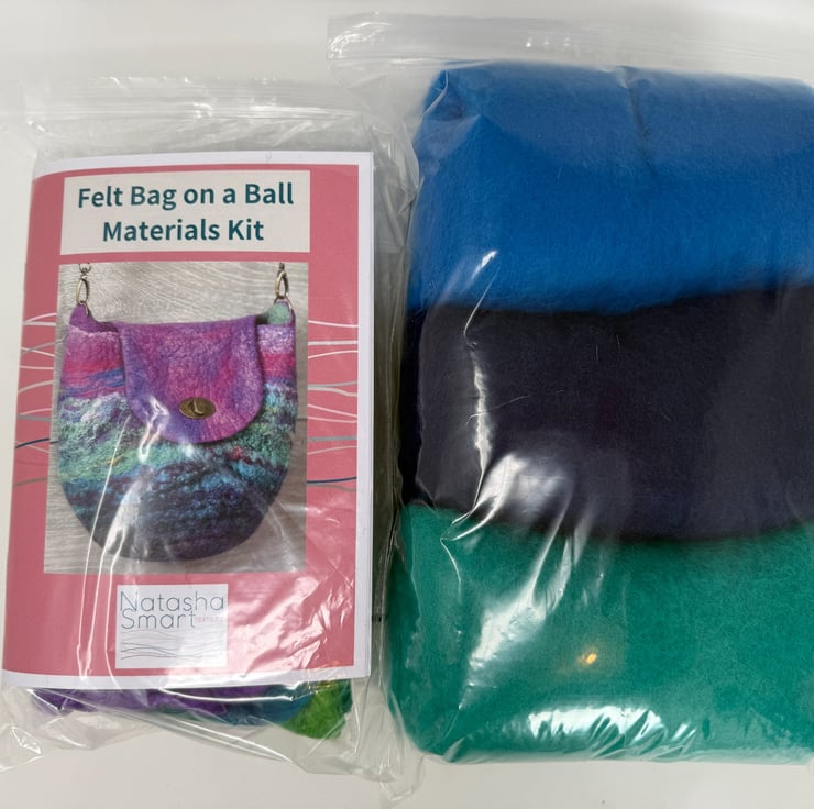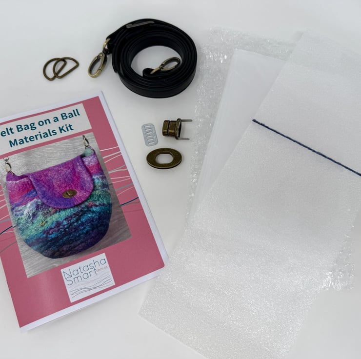 This wet felting kit provides all the materials and instructions you need to create a unique felt bag on a ball! It is also designed to accompany my more in-depth Felt Bag on a Ball online tutorials or instructions in either of my books, 'Wet Felting' or '3D Wet Felting'. For more information on my online courses and books, please visit my website www.natashasmarttextiles.co.uk.