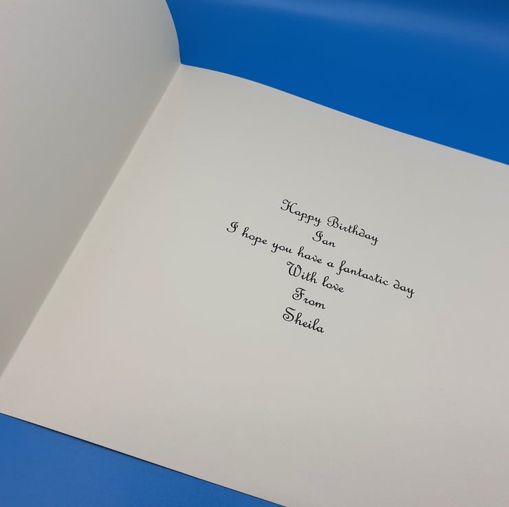 This Birthday card has a white base card that measures 8x8 inches 20x20cms and comes with a matching envelope and a insert that can be personalised please see example of the insert in the pictures.