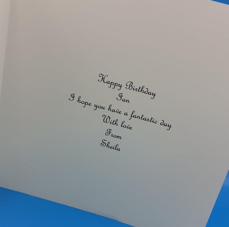 White base card that measures 8x8 inches (20x20cm) and comes with a matching envelope and a insert that can be personalised with your own message please see the example of the insert in the pictures.