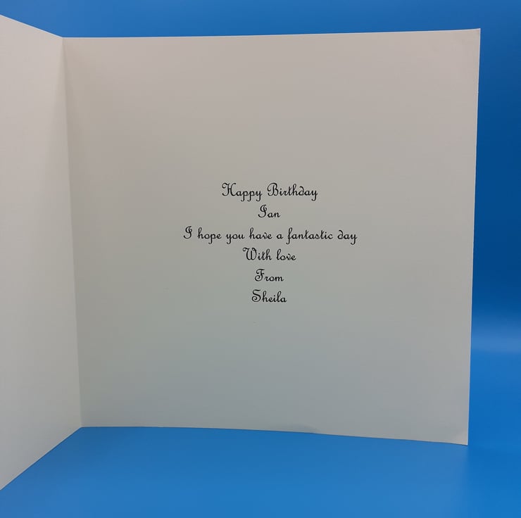 This card measures 8x8 inches 20x20cms and comes with a matching envelope and a insert that can be personalised with your own message please see the example of the insert in the pictures.