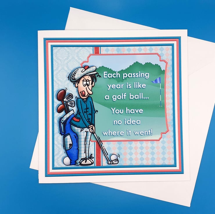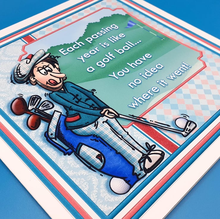 The greeting reads 'Each passing year is like a golf ball... You have no idea where it went!'