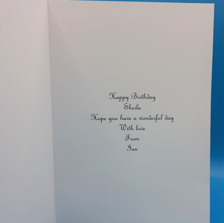 White base card that measures 8x8 inches 20x20cms and comes with a matching envelope and a insert that can be personalised with your own message please see the example of the insert in the pictures.