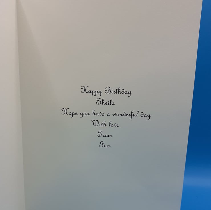 This card measures 8x8 inches 20x20cms and comes with a matching envelope and a insert that can be personalised with your own message please see the example of the insert in the pictures
