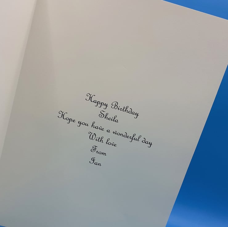 This card measures 8x8 inches 20x20cms and is made with 350gsm card and comes with matching envelope and a insert that can be personalised with your own message please see the example of the insert in the pictures