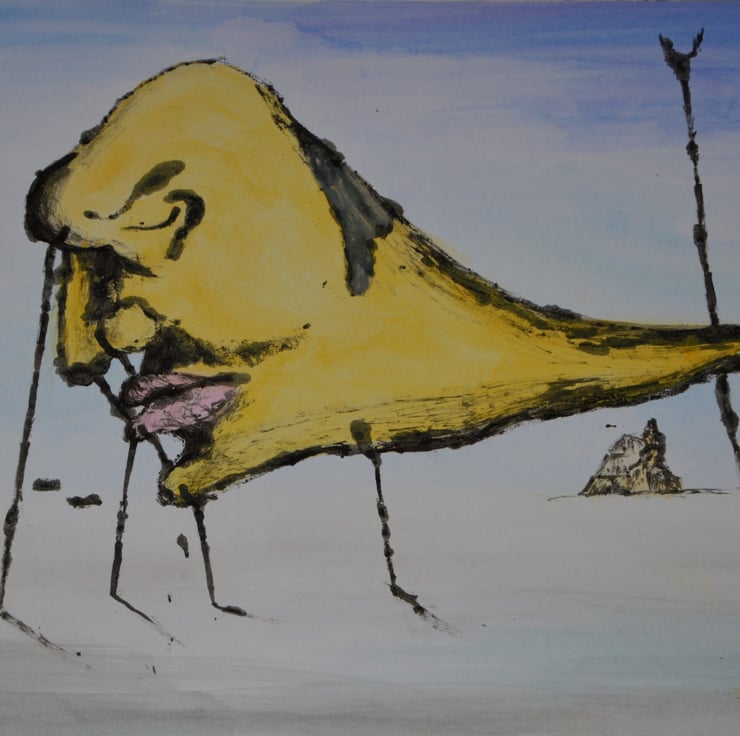 This print is printed in the ink blot style the same way that Andy Warhol created many of his pictures. This is were the image is traced and then inked and blotted onto the paper. The colours are acrylics hand painted to create the image.