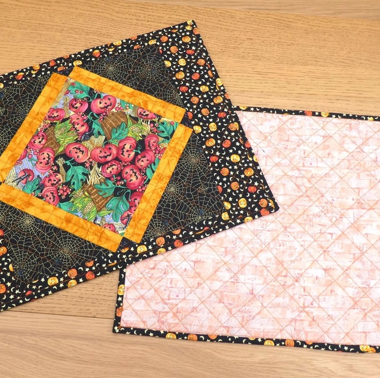 Add a festive touch to your home with this set of two handmade quilted Halloween placemats.