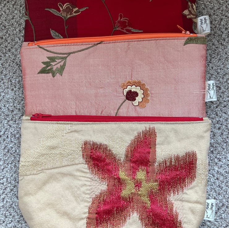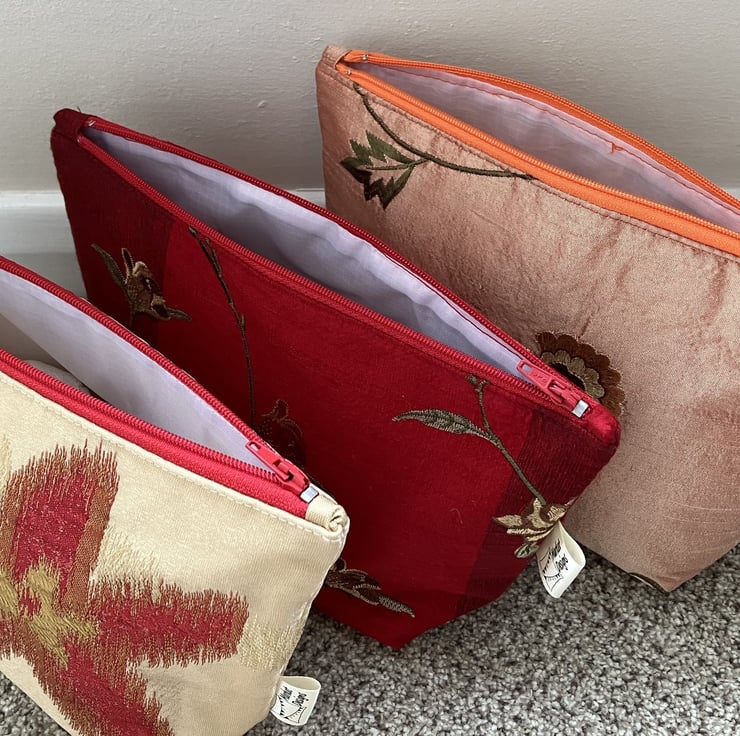These luxury Makeup bags have been created for someone special. The fabric is Polyester/viscose with a hint of silk, each makeup bag has matching zip fastener and a white waterproof lining. They are slightly padded to add to the luxury feel.