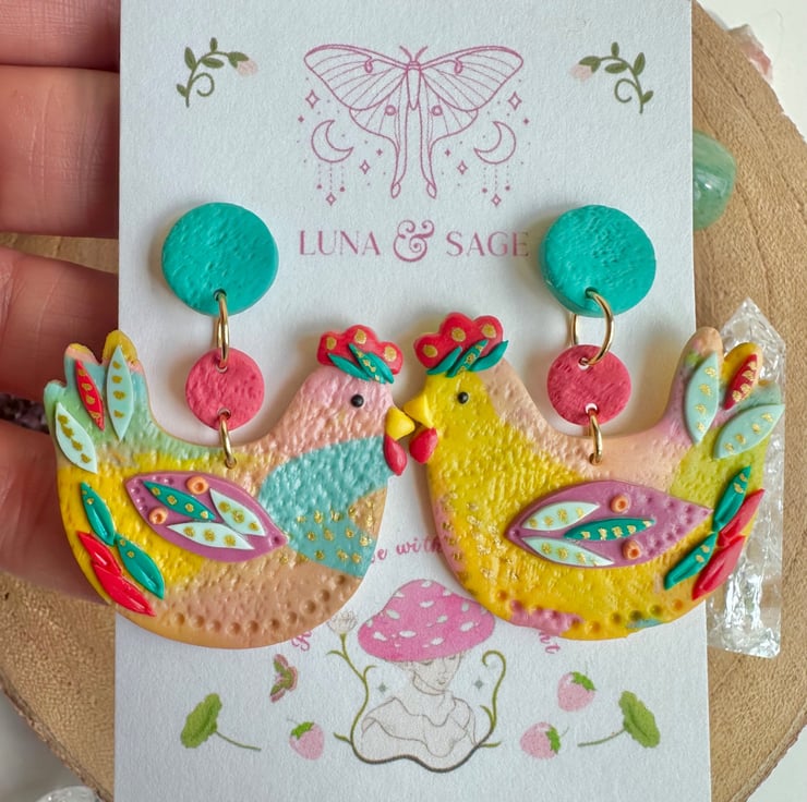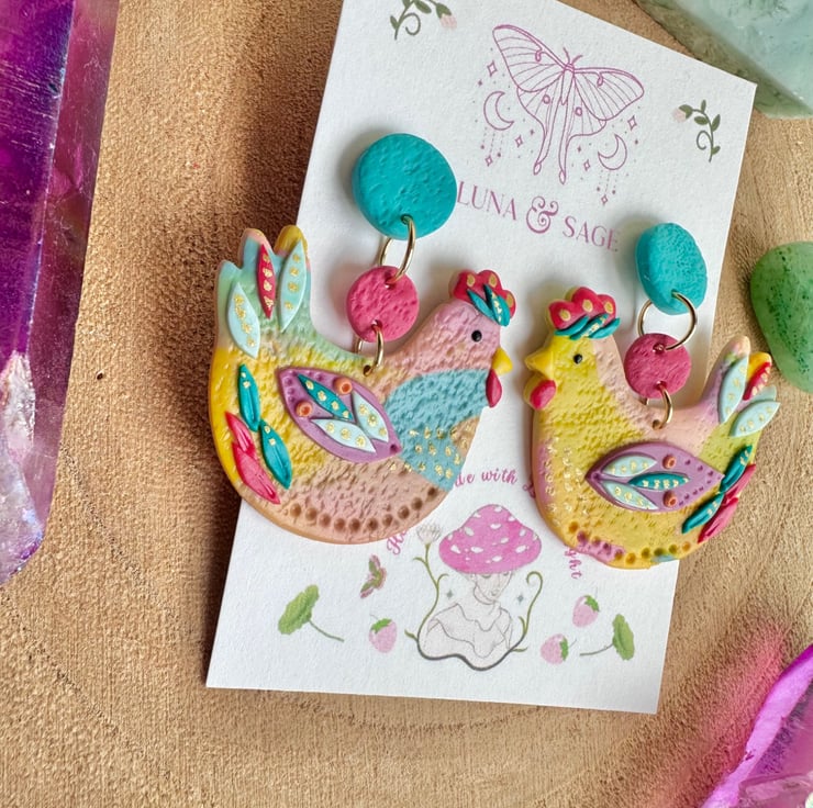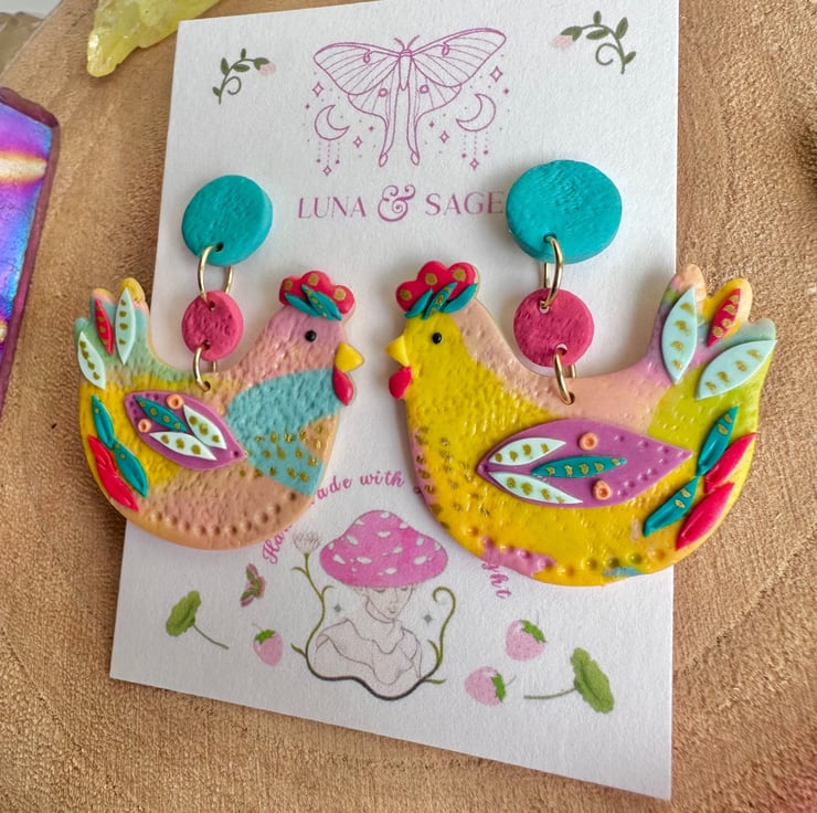 Funky Rainbow Colourful Chicken Polymer Clay earrings!