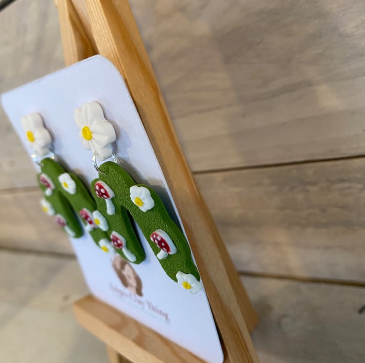 Handmade polymer clay with hypoallergenic stainless steel posts. Lightweight and comfortable.