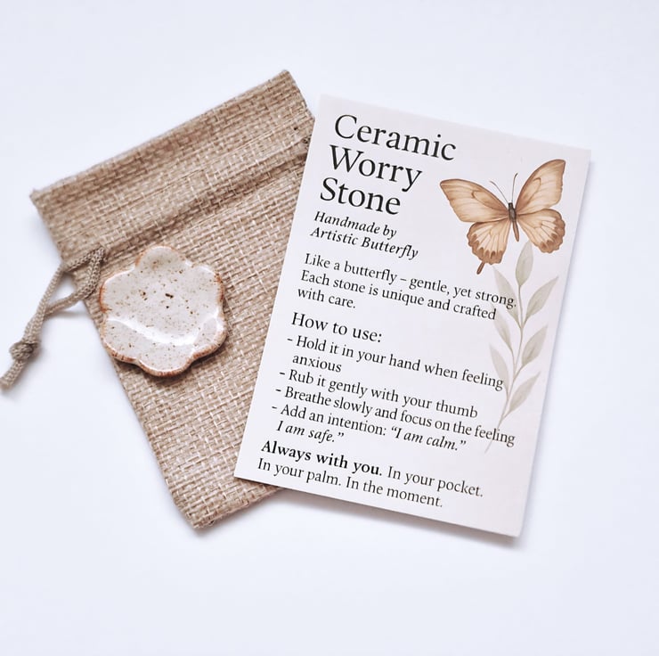 Handmade Stoneware Worry Stone - Smooth Flower Form