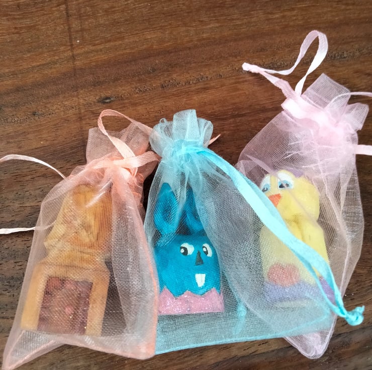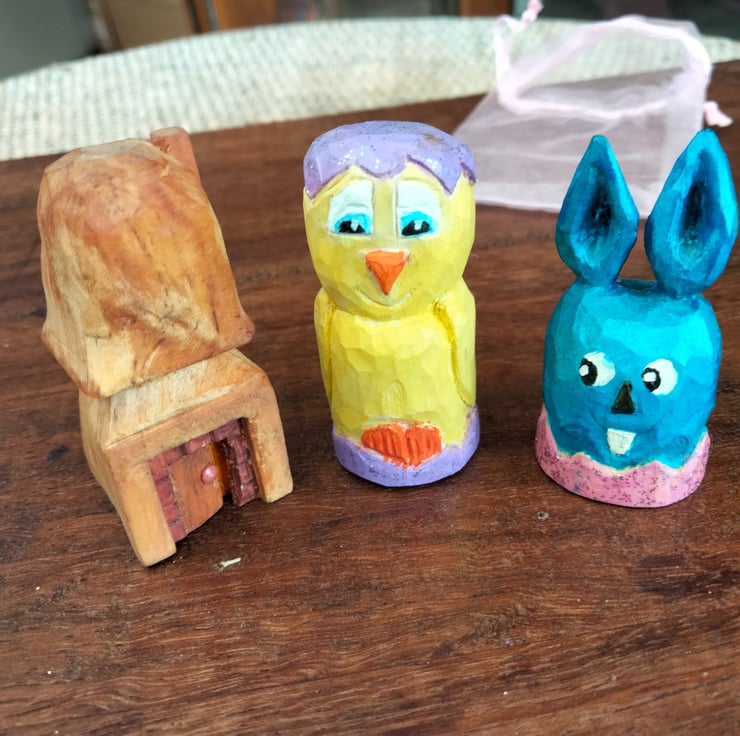 These Easter figures have been hand carved and stand about 1.5"-2" high. They are carved from either bassa wood or silver birch. They have been oiled and painted using acrylic paint. The colours may vary slightly from photo to real life. Any questions ease ask.