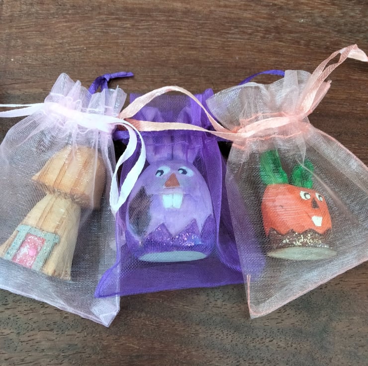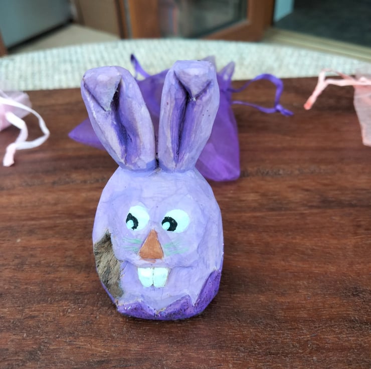 These Easter figures have been hand carved from either bassa wood or silver birch and stand at about 1.5"-2" high. They have been oiled and painted using acrylic paint. The colours may vary slightly from photos to real life. Any questions please ask.
