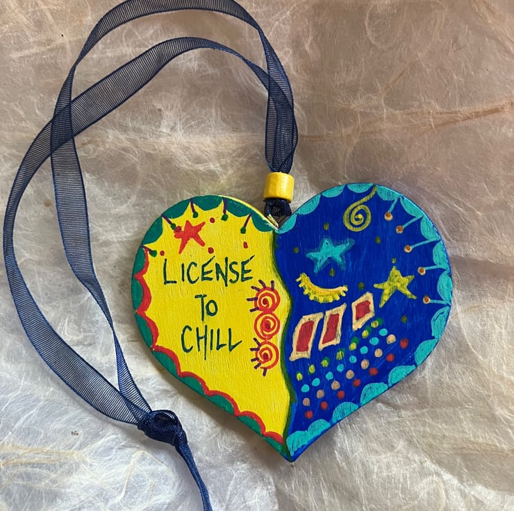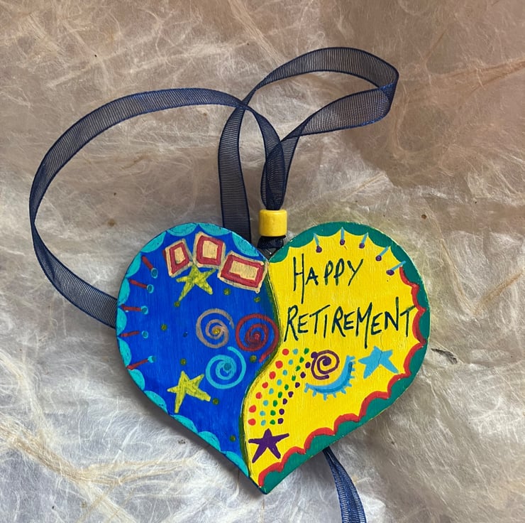 One side says HAPPY RETIREMENT and the other side says LICENSE TO CHILL. There are also a few doodles there too.