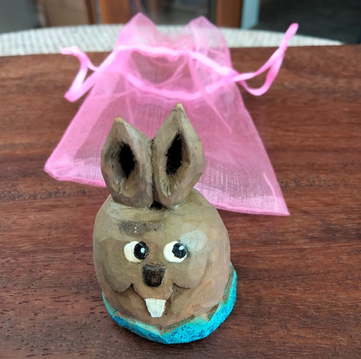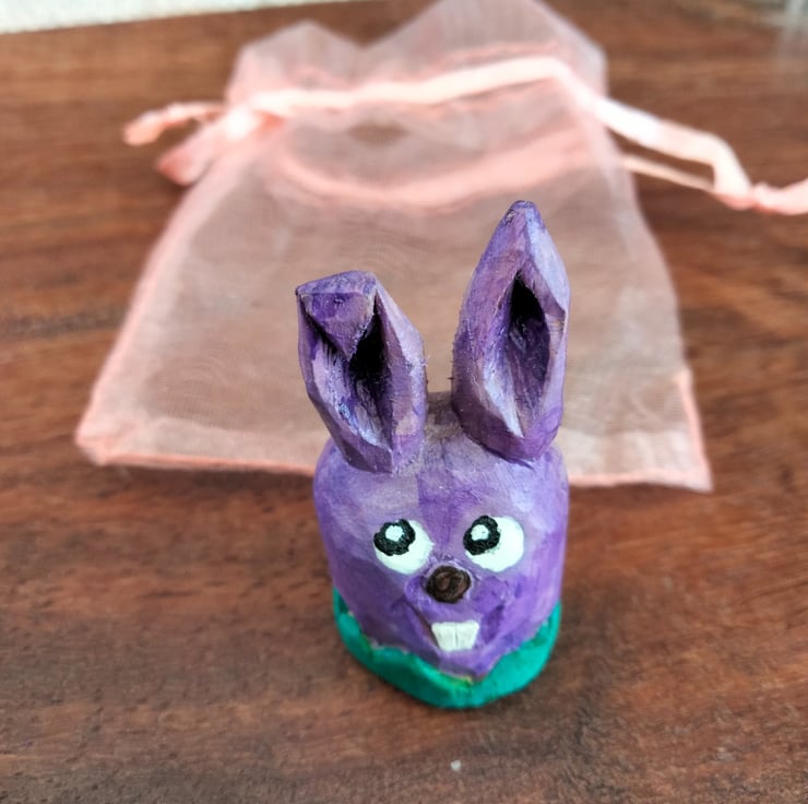 These Easter figures have been hand carved from either bassa wood or silver birch and stand at about 1.5"-2" high. They have been oiled and painted using acrylic paint. The colours may vary slightly from photos to real life. Any questions please ask.