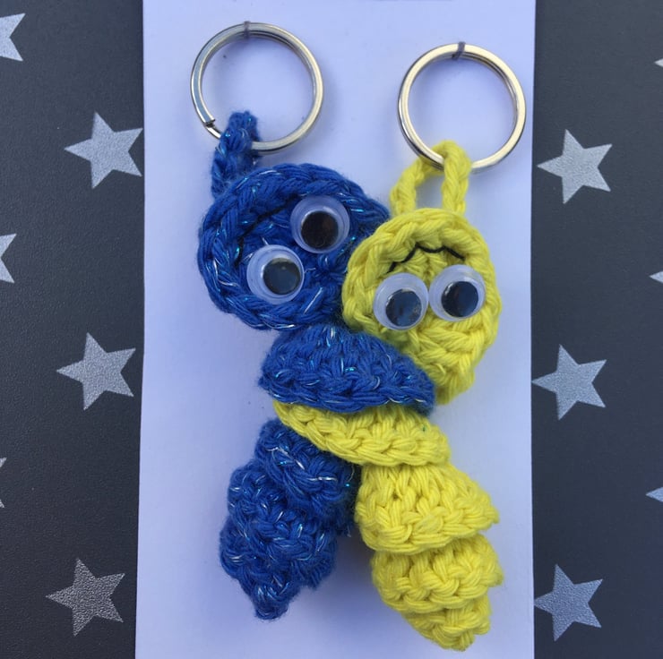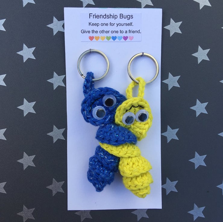 Crochet Friendship Bug Keyring, Sparkly Blue And Yellow, Best Friend Gift