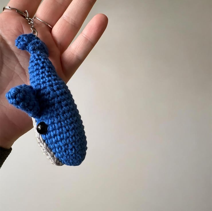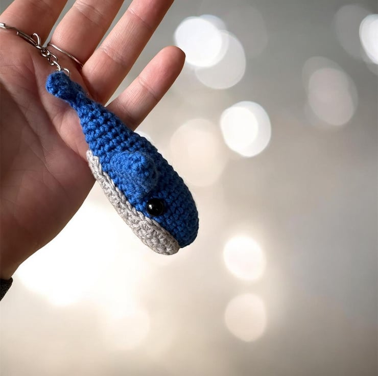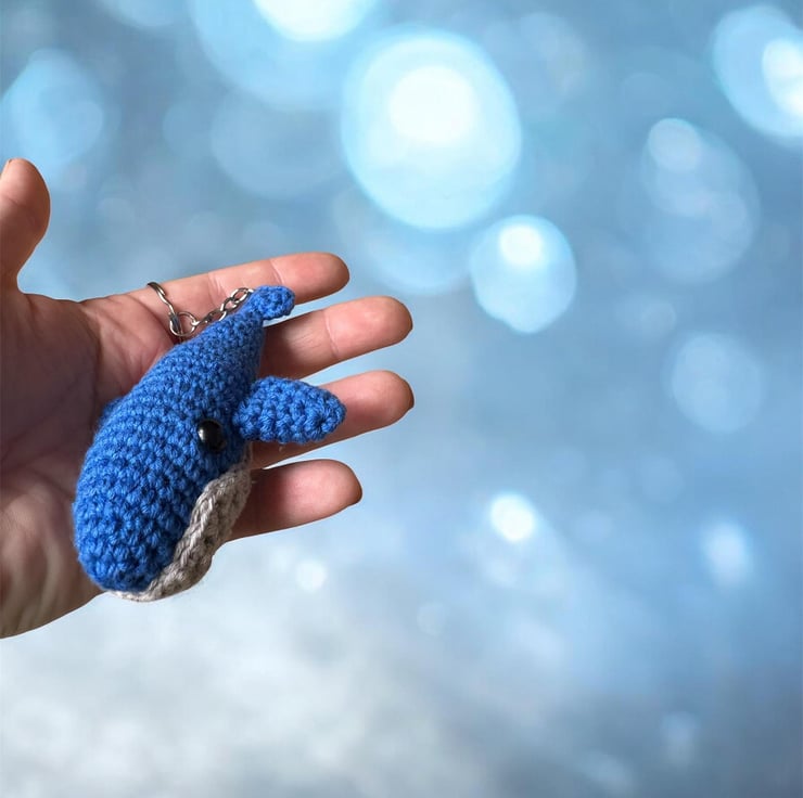 Handmade Crochet Blue Whale Keychain Amigurumi Bag Charm, Soft Plush Accessory